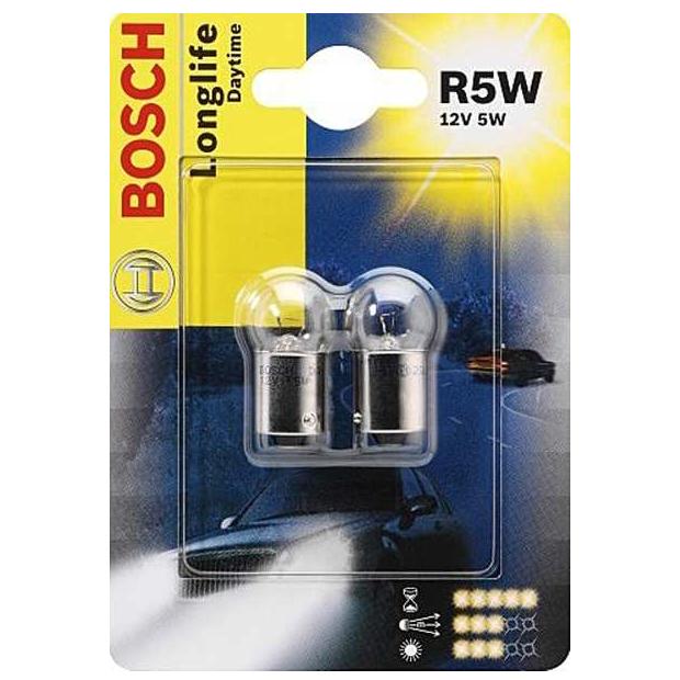 Автолампа (комплект) розжарювання BOSCH R5W 12В (1987301058) LONGLIFE DAYTIME