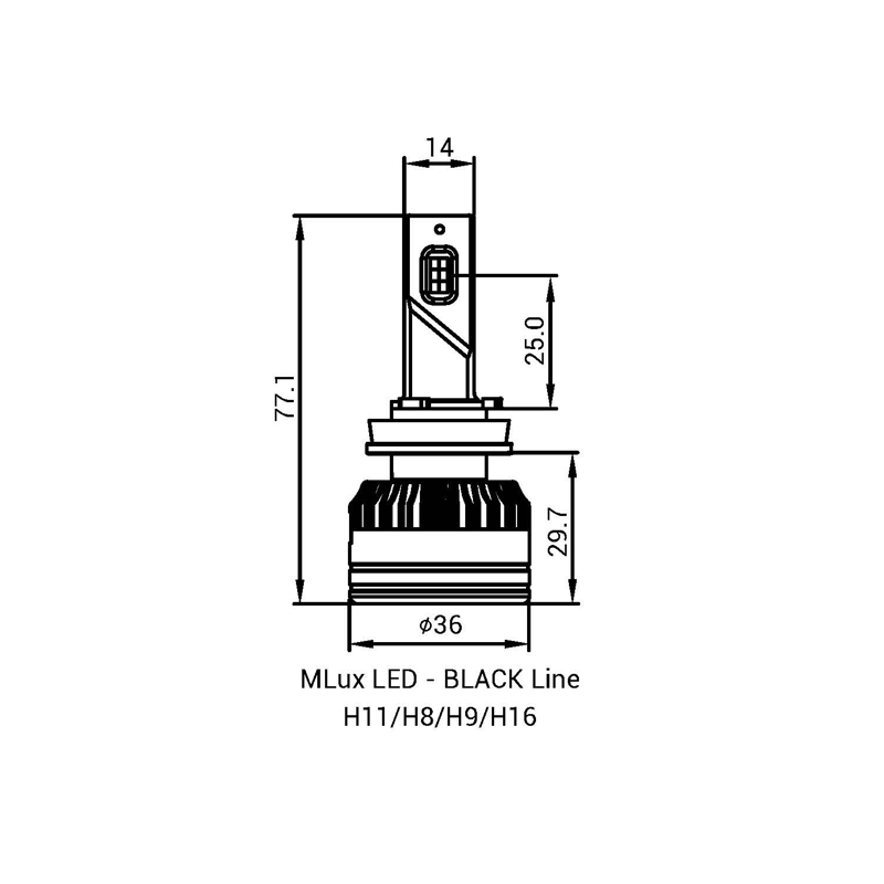 H11/H8/H9/H16, 55 Вт, 5000°К Комплект MLux LED - Black Line