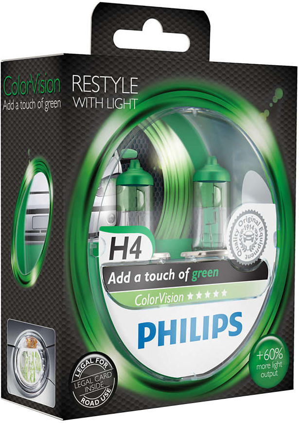 Автолампа (комплект) галогенна PHILIPS H4 12В (12342CVPGS2) COLORVISION