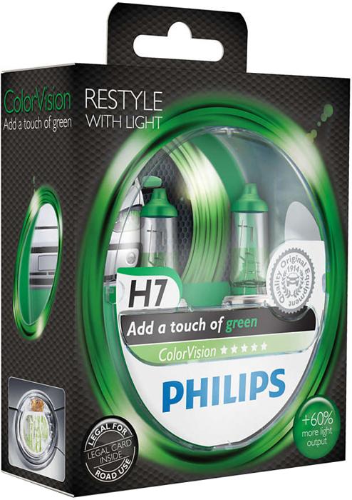 Автолампа (комплект) галогенна PHILIPS H7 12В (12972CVPGS2) COLORVISION