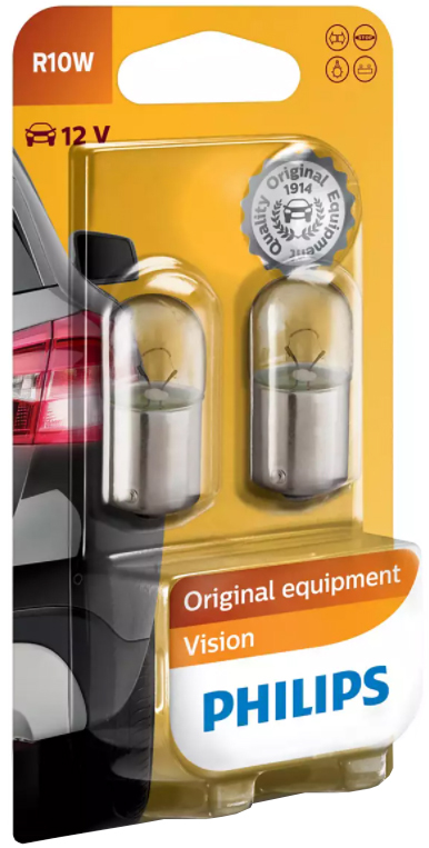 Автолампа (комплект) розжарювання PHILIPS R10W 12В (12814B2)