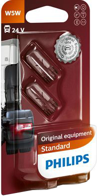 Автолампа (комплект) розжарювання PHILIPS W5W 24В (13961B2)