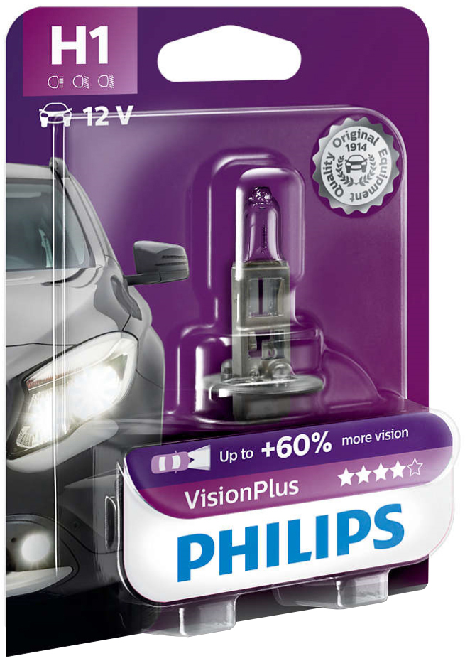 Автолампа галогенна PHILIPS H1 12В (12258VPB1) VISIONPLUS