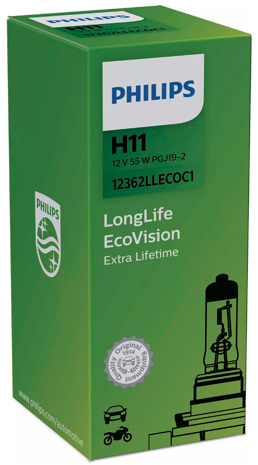 Автолампа галогенна PHILIPS H11 12В (12362LLECOC1) LONGERLIFE ECOVISION