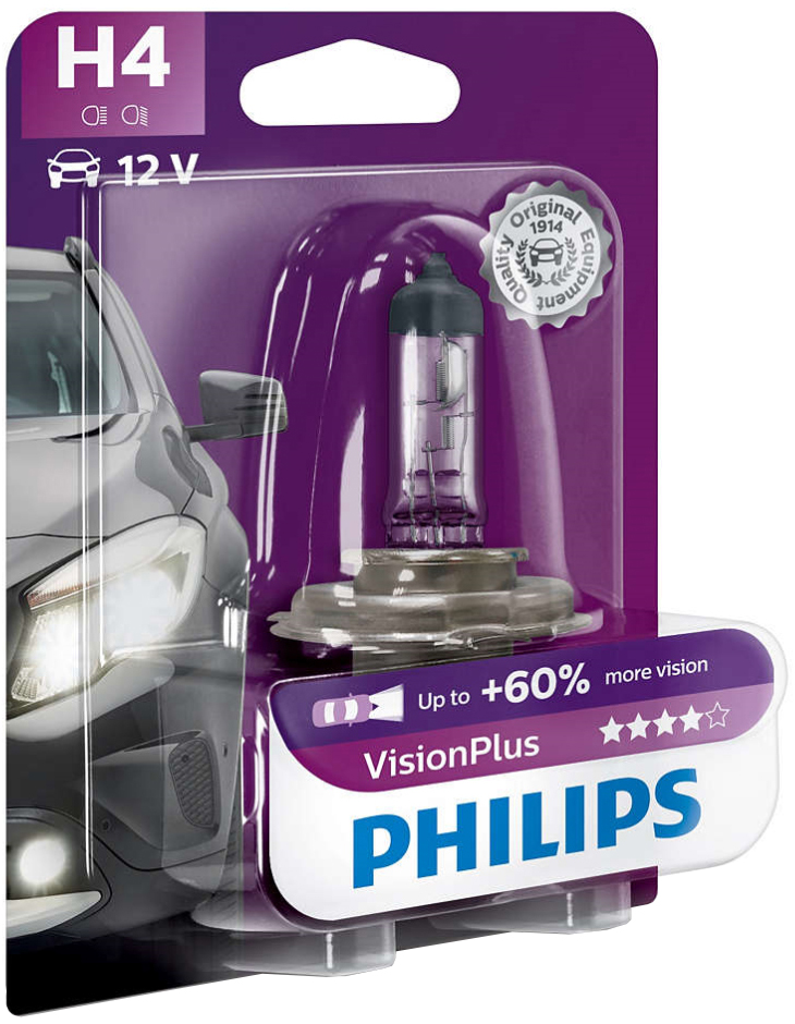 Автолампа галогенна PHILIPS H4 12В (12342VPB1) VISIONPLUS