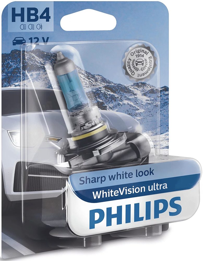 9006WVUB1 (PHILIPS) HB4 WhiteVision ultra +60% (4200K) B1 12V 51W P22d (заміна 9006WHVB1)