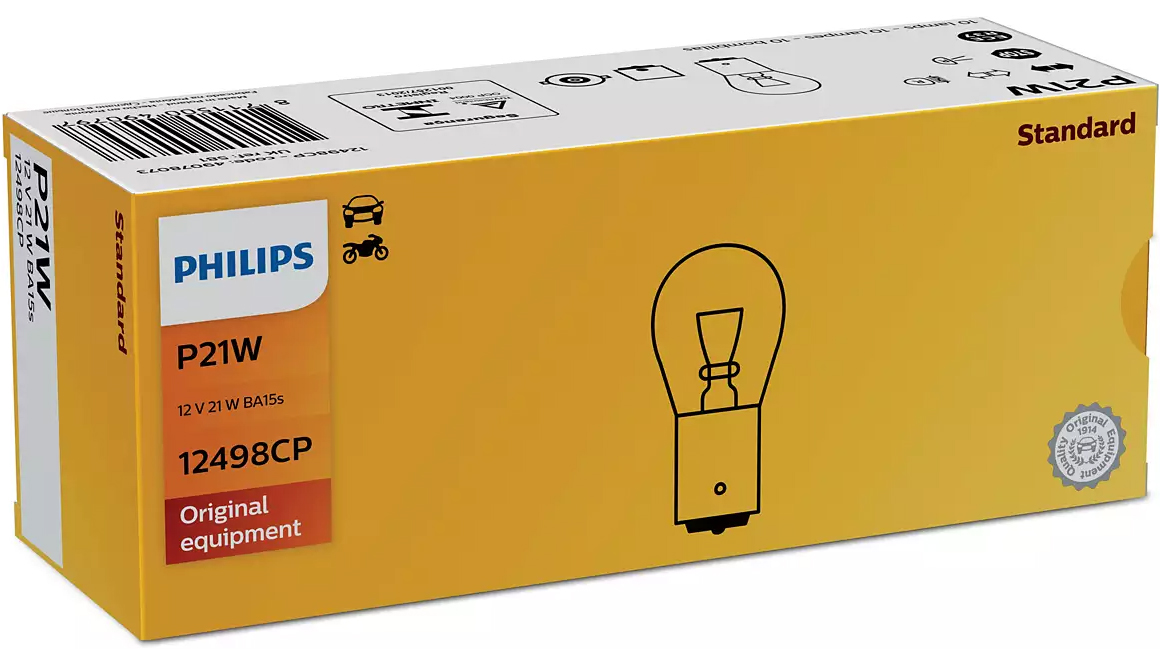 Автолампа розжарювання PHILIPS P21W 12В (12498CP) PREMIUM