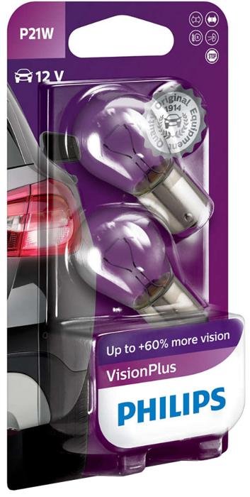 12498VPB2 (PHILIPS) P21W VisionPlus (+60%) 12V 21W BA15s Blst. 2 pc.