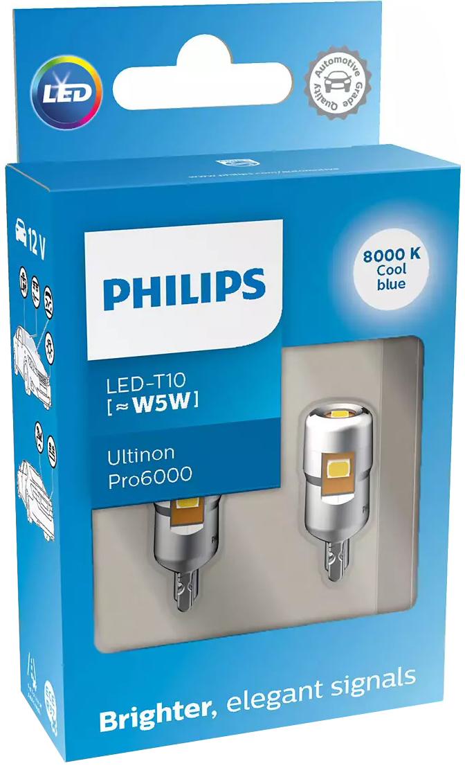 ЛАМПА СВЕТОДИОДНАЯ 12V LED W5W 0.9W W2.1X9.5D LED WHITE ULTINON P