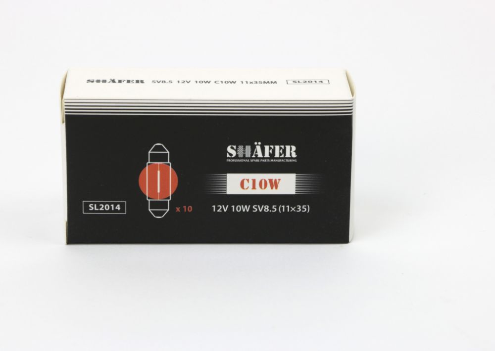 Лампа накалювання 12V 10W C10W SV8.5 (11×35) (картонна упаковка по 10шт)