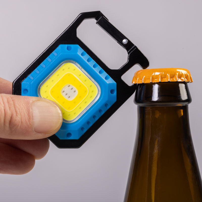 - Завдяки карабіну його можна використовувати як кільце для ключів, пристебнути до одягу, рюкзака або іншого предмета, виконуючи попереджувальну або освітлювальну роль.