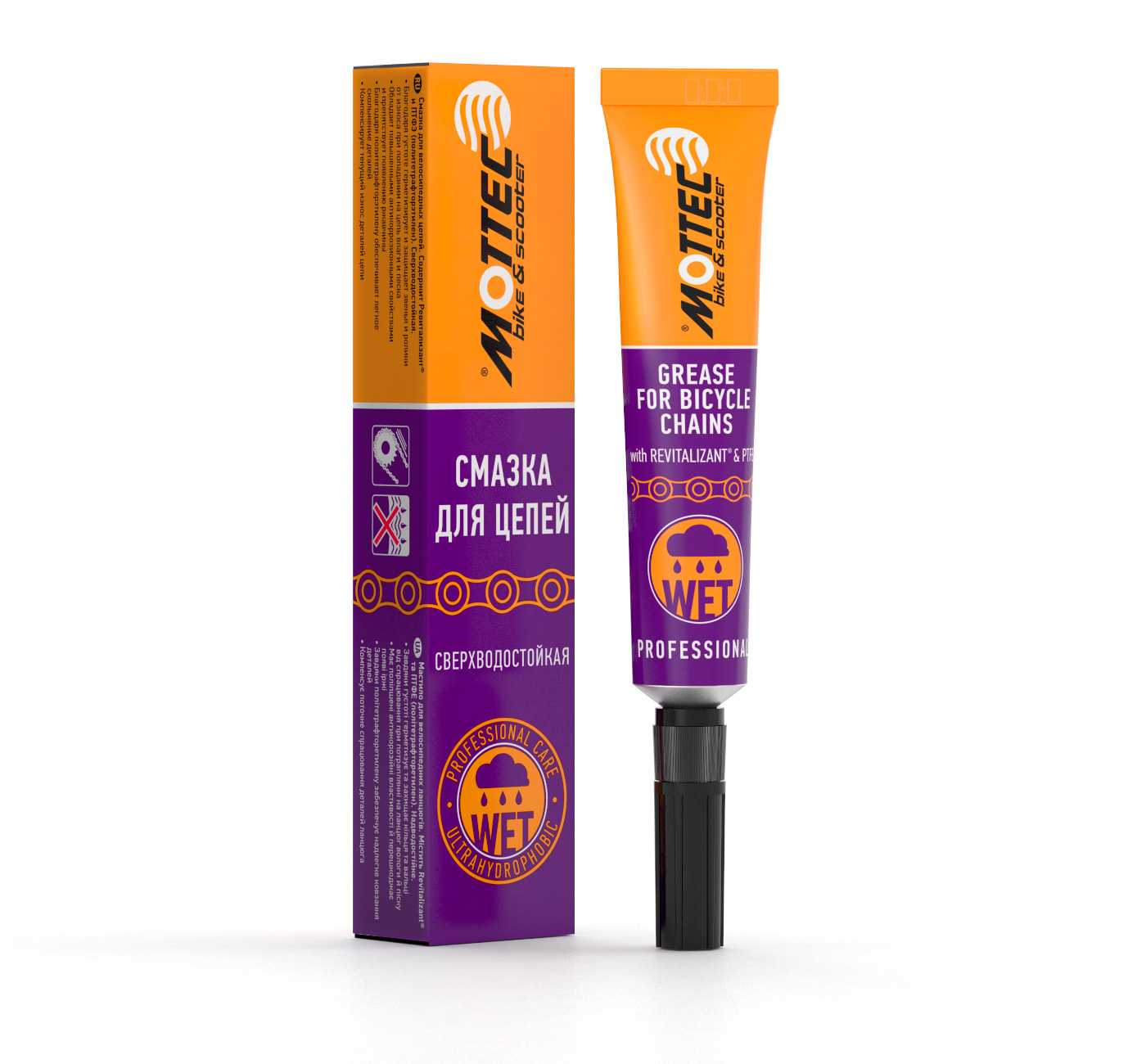 Містить REVITALIZANT® і ПТФЕ (політетрафторетилен). Застосовується для змащування й захисту від спрацювання ланцюгів мототехніки та велосипедів. Має густу консистенцію, ідеально захищає ланцюги велосипедів і мотоциклів у разі потрапляння на них води, піску й бруду. Незамінний помічник для поїздок і подорожей у будь-яку погоду.