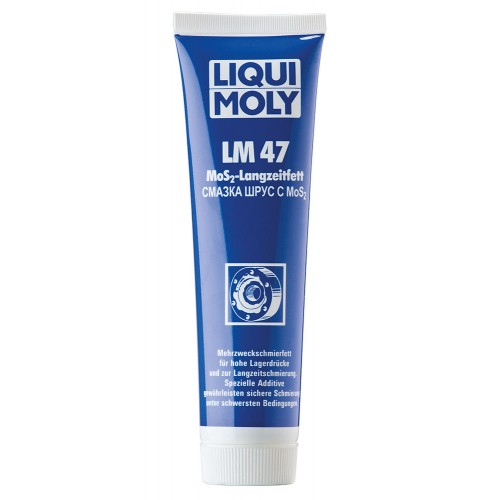 Змащування розпилювача з дисульфідним молібденом LM 47 Langzeitfet + MOS2 Високоефективна спеціальна мастила. Добавка з сульфідним молібденом забезпечує чудові мастила та стійкість до високих навантажень, які не можуть забезпечити звичайні мастильні матеріали. Коли застосовується ця мастила, молібденний дисульфід утворює сильну тонку плівку, яка залишається навіть з повною відсутністю змащення. Масштабність зберігається дуже тривалий час, підходить для використання в центральних системах змащення. Діапазон температури використання становить від -30 ° С до +125 ° С. Як подати заявку на встановлення, технічне обслуговування, ремонт автомобілів, інструментів, сільськогосподарських та лісозаготівельних машин та механізмів. Для високо завантажених підшипників, рульових стрижнів, щілинних валів, різьбових суглобів та путівників, рульових приводів. Листування та допуски: DIN 51502 KRF 2 K-30.