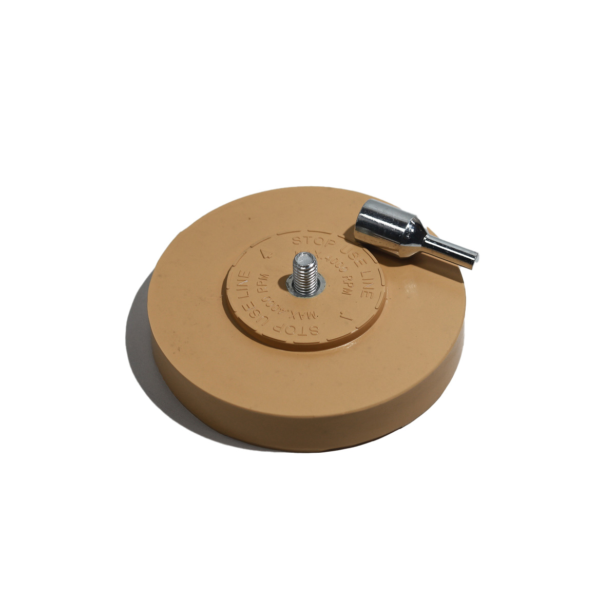 Виготовлений із твердого каучуку. Чудово справляється з видаленням двосторонніх клейких стрічок та наклейок з кузова автомобіля, запобігаючи пошкодженню лакофарбового покриття. Для встановлення на шуруповерти та дрилі в комплекті з колом передбачено спеціальний адаптер. Призначений для швидкого та ефективного механічного видалення двосторонніх клейких стрічок, наклейок, декоративних стрічок із кузова автомобіля без пошкодження лакофарбового покриття. Не підходить для фарбованих пластмасових елементів. Опис: Видалення наклейок: Використовуйте для видалення будь-якого вінілу, наклейок, графіки, двосторонньої клейкої стрічки, смуг та оздоблення з легкових автомобілів, вантажівок або подібних транспортних засобів. Використовуйте з електродрилем зі швидкістю обертання до 4 000 об/хв (найкращі результати - від 1 500 до 3 000 об/хв). Покращений дизайн: Міцна кругла конструкція більша за розміром, ніж у інших дисків, що робить цей круг швидким, легким в управлінні, менше забивається під час використання та залишається прохолодним. БЕЗПЕЧНИЙ: Не дряпає і не пошкоджує акрилову емаль або уретанову фарбу; не вимагає використання небезпечних хімічних речовин; цей круг має міцну конструкцію і витримує до 4 000 об/хв; в комплекті є кріплення 5/16» 24, що робить його сумісним з будь-якими стандартними свердлами. Простий у використанні: Почніть з верхньої частини наклейки, м'яко натискайте і рухайте з боку в бік, або для швидшого результату використовуйте всю ширину круга без нахилів і під кутом. Видаліть залишки за допомогою відповідного м'якого розчинника. Характеристики: Діаметр: 88 мм Товщина – 15,5 мм Колір: жовтий Розмір різьби: 5/16"-24