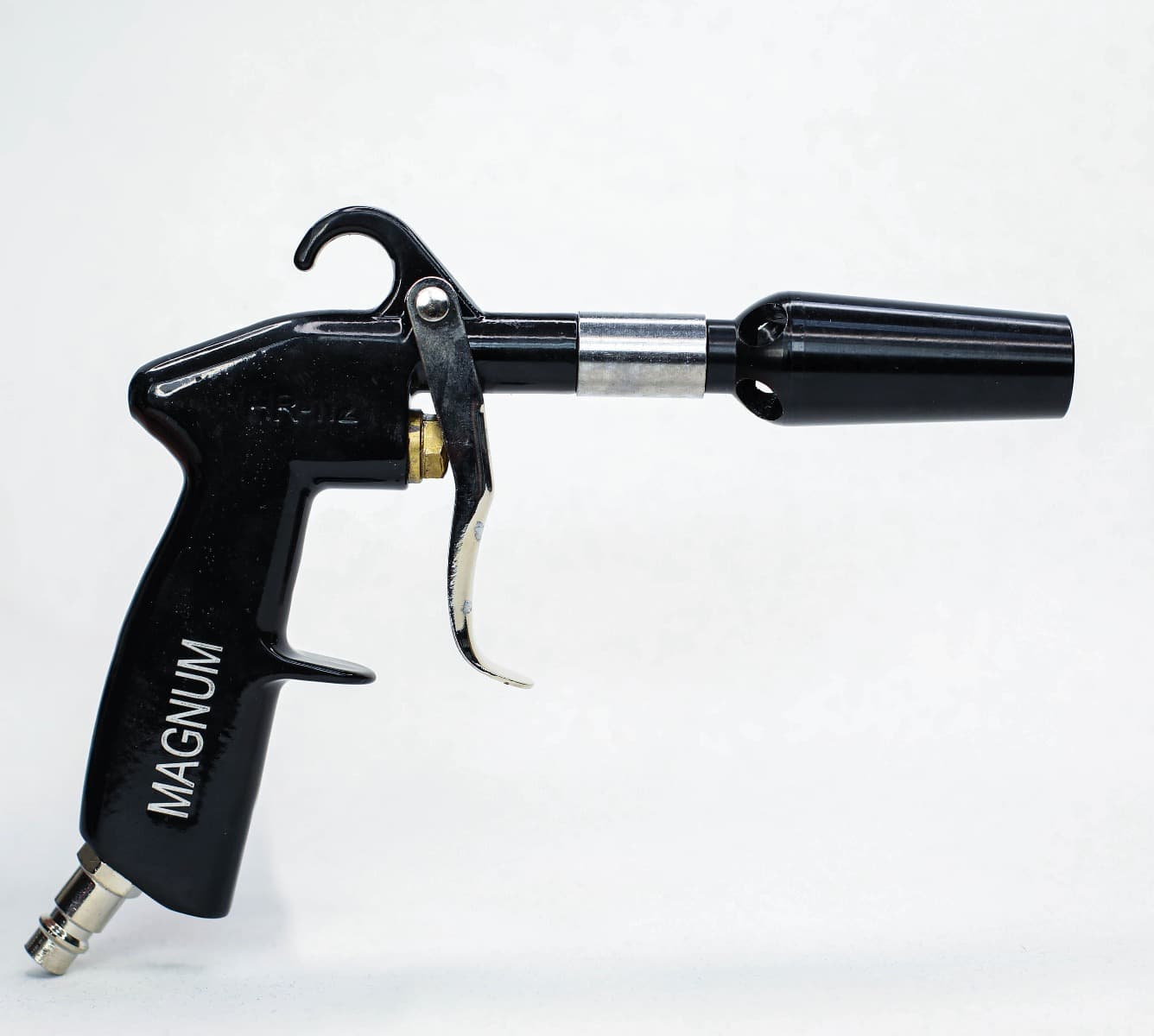 Обдувний пістолет Magnum з "турбо" ефектом. Це багатофункціональний пістолет для глибокого очищення важкодоступних місць. У рази прискорює сушку автомобіля після мийки. Якісне рішення для очищення від механічного пилу будь-якої ремонтної поверхні. Працює на стисненому повітрі від 3 до 10 бар від компресора стисненого повітря.