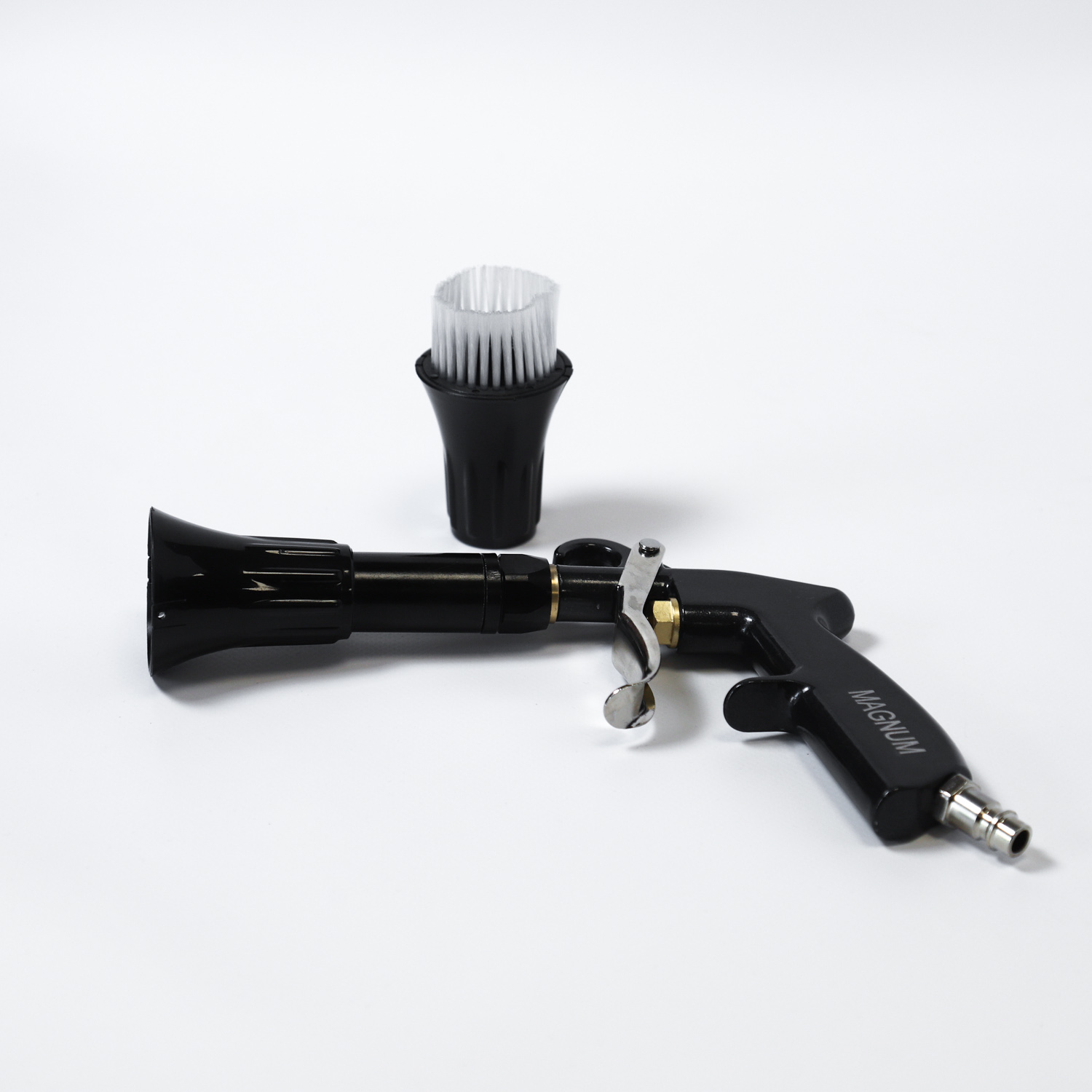 Вибивний аеропістолет Magnum - працює без використання води та хімікатів! Це універсальний інструмент, який працює так само, як і торнадор, при цьому зручніший, тому що не має бачка для хімії. Відмінний інструмент для вибивання піску із ковроліну, обдування кузова після миття тощо. Бруд вибивається потоком стисненого під високим тиском повітря, подібно до вихора торнадо. Також використовується при поліруванні автомобіля – очищення залишків пасти з полірувальних кіл. Робочий тиск: 6-9,2 бар