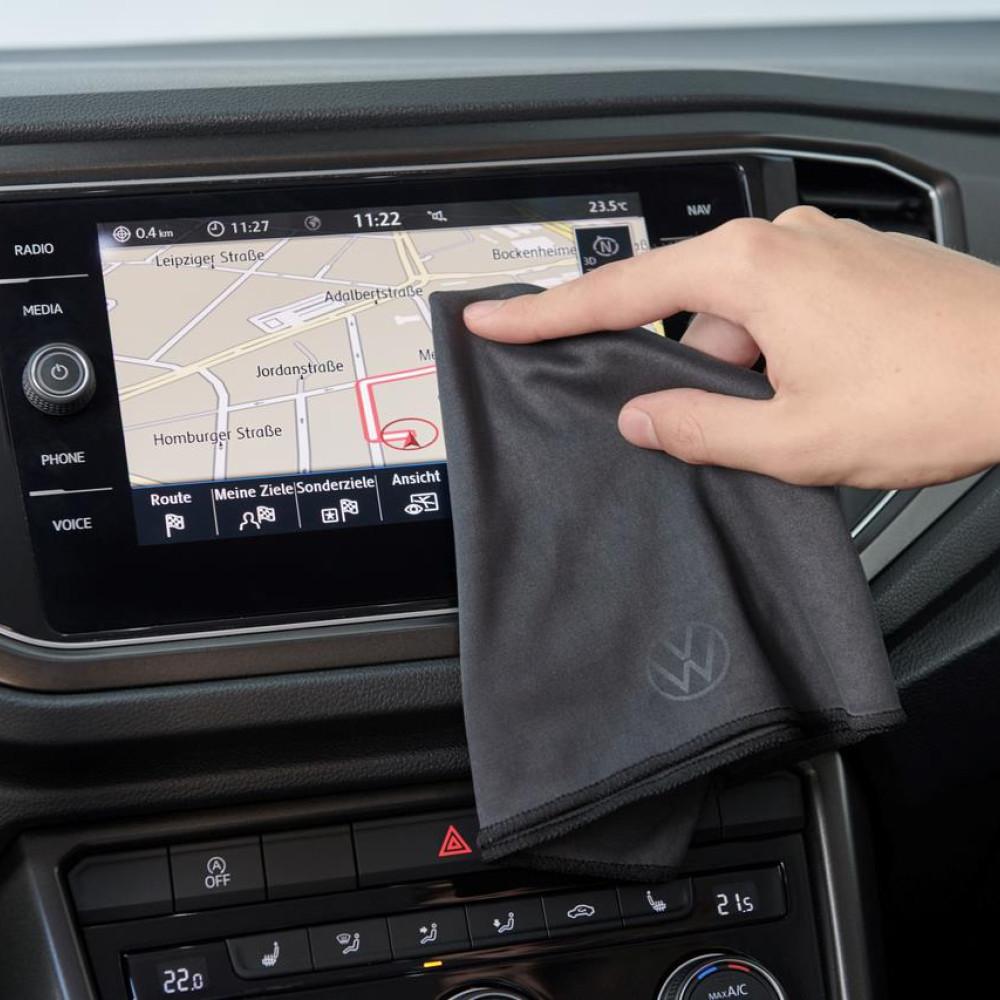 Акуратно протріть все серветкою з мікрофібри Volkswagen для сенсорних дисплеїв, щоб зробити їх чистими і блискучими. За допомогою цієї серветки з мікрофібри ви можете швидко і надійно видалити відбитки пальців та інші забруднення з сенсорних дисплеїв і глянцевих поверхонь без додавання миючих засобів. Тканина зносостійка, її можна прати, на ній нанесено тиснений логотип Volkswagen. Оригінальний продукт з колекції аксесуарів Volkswagen - найкраща ідея для подарунка автофанату.