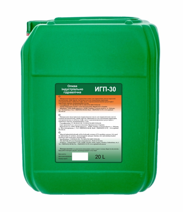 Мінеральна індустріально-гідравлічна олива для гідравлічних систем верстатів автоматичних ліній, пресів. Застосовується для змащування варіаторів, електромагнітних і зубчастих муфт, високошвидкісних коробок передач, мало- і середньонавантажених редукторів і черв'ячних передач, підшипникових вузлів