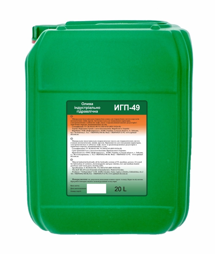 ИГП-49 - Мінеральна індустріально-гідравлічна олива для гідравлічних систем верстатів автоматичних ліній, пресів.