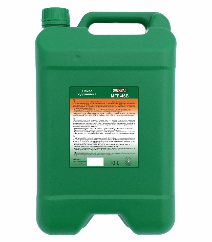 МГЕ-46В — всесезонна гідравлічна олива високої якості, що виготовляється на підприємстві ТОВ «Нафтопродукт» з глубокоочищенных базових олив. Розроблено спеціально для гідравлічних систем (гідростатичних приводів) будівельних, сільськогосподарських та інших видів машин, що піддаються великим навантаженням. Застосовується також для гідравлічних насосів.