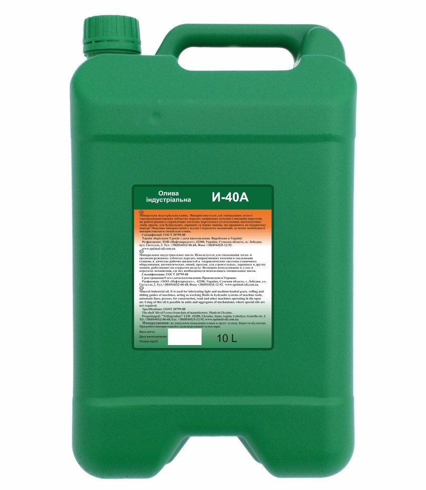 Індустріальна олива І-40А - дистилятна олива або суміш залишкової та дистилятної нафтових олив, отриманих із сірчистих та малосірчистих нафт селективного очищення.
