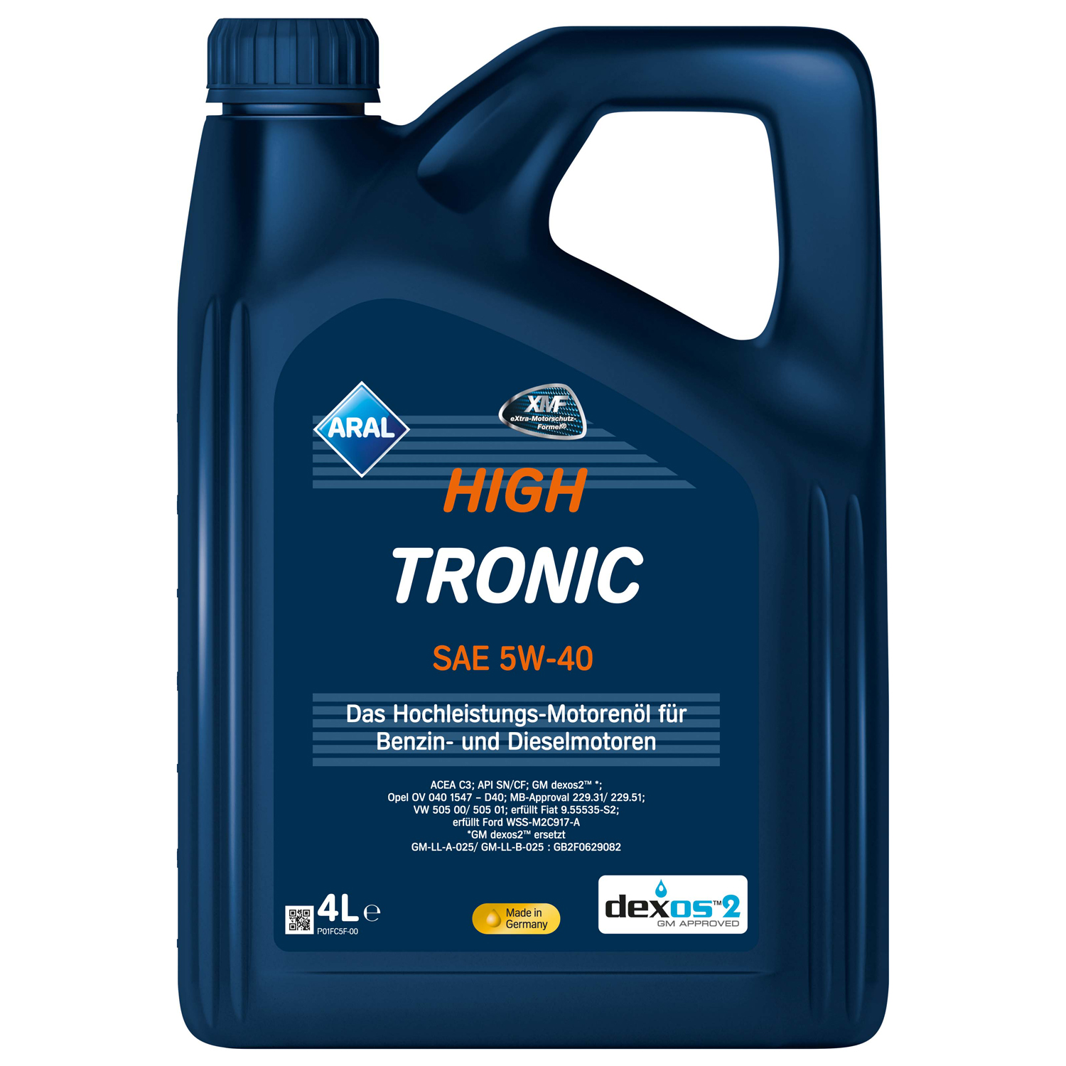 Aral HighTronic 5W-40 - високоякісна моторна олива для сучасних бензинових і дизельних легкових автомобілів, створена із застосуванням технології AralXMF. Експлуатаційні і технічні характеристики близькі до повністю синтетичних олив Aral - зверніть увагу на допуски Mercedes-Benz, BMW, Porsche і GM, але пропонує перевагу в ціні. Його формула дозволяє реалізувати подовжені (відповідно до рекомендацій виробника автомобіля) інтервали заміни. Aral HighTronic 5W-40 - низькозольна олива. У складі вміст сульфатної золи, фосфору і сірки знаходиться в рамках лімітів, встановлених для безпроблемної взаємодії з сучасними системами очищення вихлопних газів, зокрема з фільтрами саж DPF. Такі фільтри очищають відпрацьовані гази дизельних двигунів шляхом збору і автоматичного дожига сажі, що дозволяє виконати суворі вимоги норм Euro V і Euro VI. Фільтри DPF в силу своєї конструкції дуже вимогливі до якості використовуваних пального і олив. Моторні оливи повинні проводитися по низькозольний технології (Low-SAPS). У таких оливах застосовується нове покоління присадок, які виконують колишні завдання, але мають новий склад. Як і всі синтетичні оливи Aral, HighTronic 5W-40 забезпечує легкий зимовий пуск, чистоту двигуна і надійний захист від зносу.