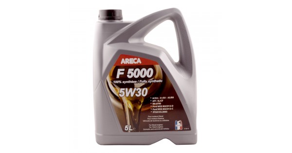 Для двигунів Renault, Peugeot і Citroen без фільтру сажі + для Renault, Peugeot та Citroen + економить паливо ARECA F5000 5W-30 – це всесезонна синтетична моторна олія з покращеним індексом в'язкості. Відповідає останнім вимогам щодо енергозбереження та інтервалів заміни олії для європейських автомобілів. ARECA F5000 5W-30 активно перешкоджає піноутворенню, а також відкладенню шламу та лаку, знижує тертя, запобігає зносу деталей двигуна. Найбільш ефективно виявляє свої властивості при холодному запуску двигуна в зимовий період (до – 30оС). Завдяки малов'язкій формулі знижує енергетичні втрати та втрати на тертя і, як результат, знижує витрату палива. ARECA F5000 5W-30 чудово підходить для сучасних атмосферних та турбованих бензинових та дизельних двигунів, французького виробництва Renault, Peugeot та Citroen. Підходить також для Chevrolet, Chrysler, Dodge, Fiat, Lancia, Alfa Romeo, Ford, Land Rover, Jaguar, Volvo, Rena