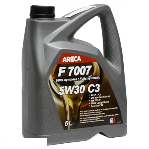 ARECA F7007 5W30 – це всесезонна синтетична моторна олія нового покоління, розроблена для бензинових та дизельних двигунів (у тому числі з турбонаддувом) легкових автомобілів та мікроавтобусів VOLKSWAGEN, AUDI, SKODA та SEAT. Відповідно до рекомендацій виробників автомобілів забезпечує нормальні та подовжені (WIV) інтервали заміни моторного масла. Застосування цього продукту гарантує зменшення вмісту золи та твердих частинок у вихлопних газах. Композиція базових синтетичних (PAO) та гідрокрекінгових (HC-synthese) масел у сукупності з сучасною адитивною системою забезпечують цьому моторному маслу чудові антиокислювальні, протизносні та антикорозійні властивості, а також відмінні низькотемпературні характеристики. Рекомендації щодо застосування Моторна олія F7007 5W30 C3 504/507 рекомендована для застосування в бензинових двигунах типу FSI і TFSI, дизельних двигунах, обладнаних насос-форсунками (PD) або іншими системами безпосереднього упорскування палива (TDI), а також оснащених фільтрами уловлювання сажових частинок (DPF)
