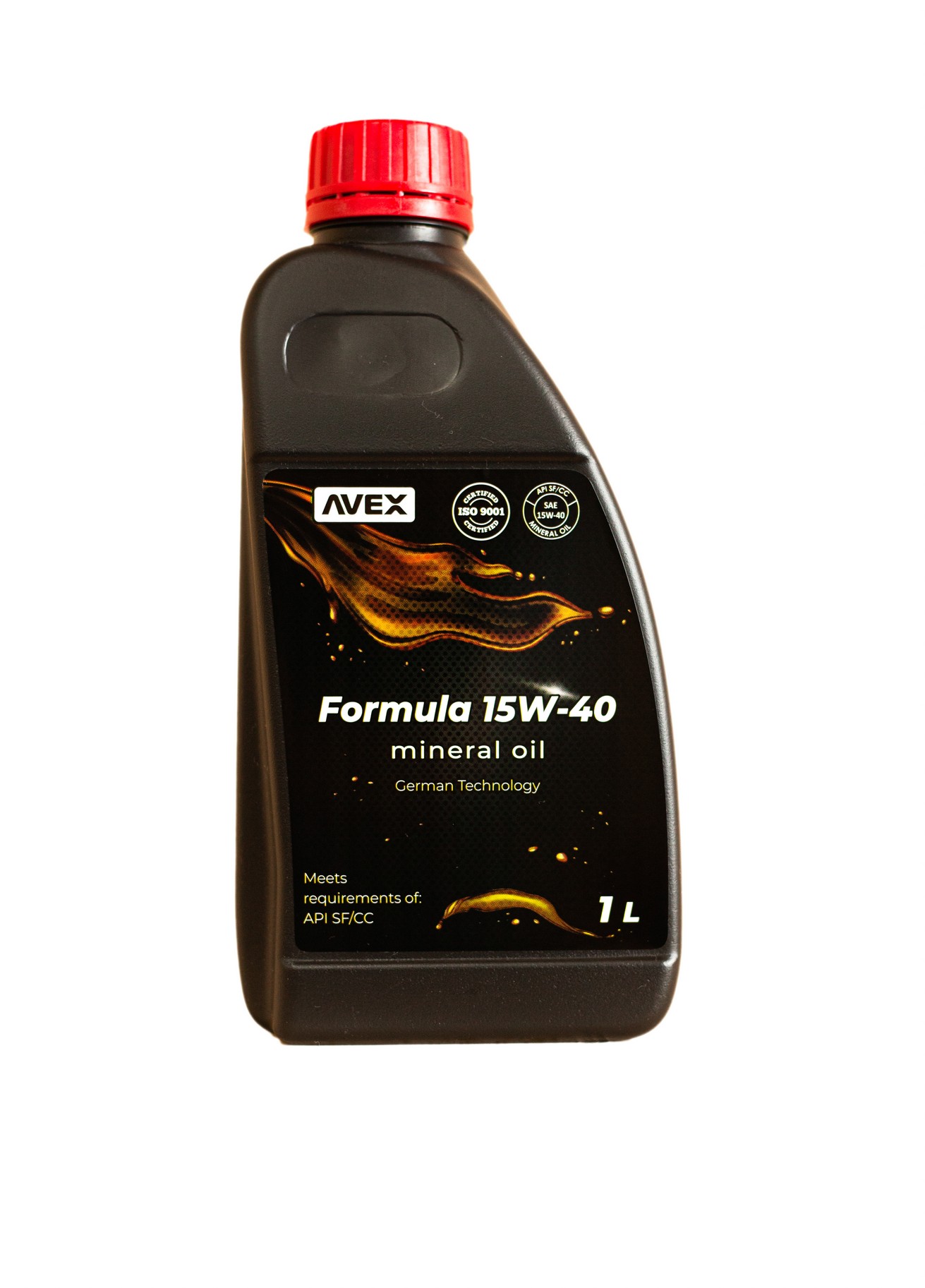 Моторна олива AVEX Formula 15W-40 - всесезонна мінеральна моторна олива, яка забезпечує надійний захист двигуна впродовж усього терміну служби. Олива виготовлена на основі мінеральних базових компонентів з використанням високоякісного пакету присадок. Призначена для застосування у бензинових і дизельних двигунах легкових та малотоннажних вантажних автомобілів, де потрібно використовувати оливи рівня API SF/CC і нижче. • Високі антикорозійні та протизадирні властивості