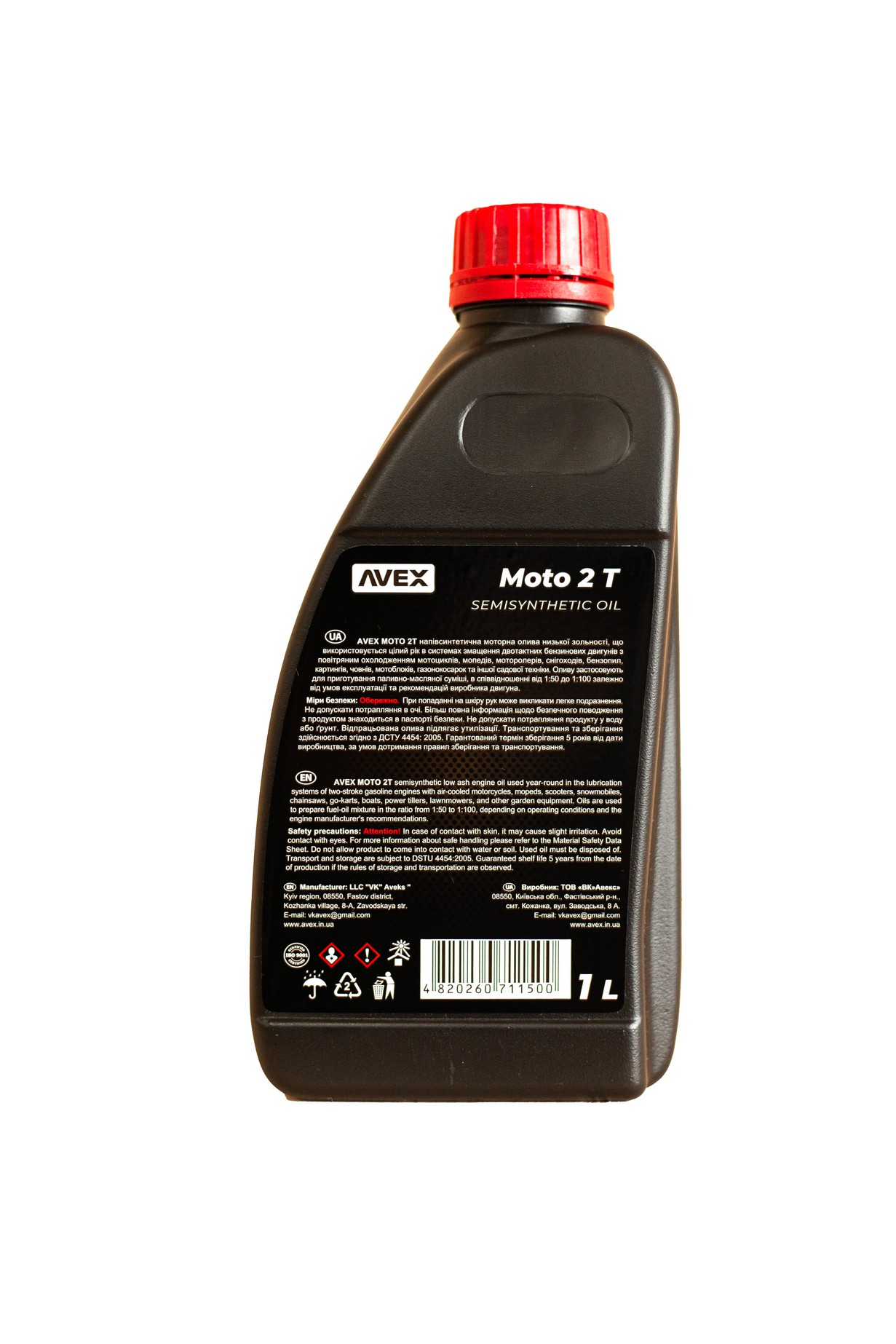 Моторна олива AVEX MOTO 2T напівсинтетична моторна олива низької зольності, що використовується цілий рік в системах змащення двотактних бензинових двигунів з повітряним охолодженням мотоциклів, мопедів, моторолерів, снігоходів, бензопил, картингів, човнів, мотоблоків, газонокосарок та іншої садової техніки. Оливу застосовують для приготування паливно-масляної суміші, в співвідношенні від 1:50 до 1:100 залежно від умов експлуатації та рекомендацій виробника двигуна.