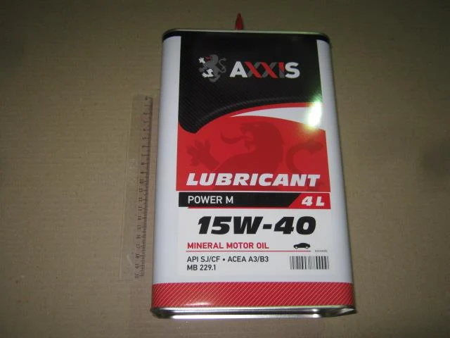 15W-40 AXXIS Power M - Мінеральна моторна олія призначена для швидкохідних бензинових та дизельних чотиритактних двигунів, включаючи двигуни з каталізатором та турбонаддувом. Перевищує допуски: API SL/CF, ACEA A3/B3, MB 229.1 Проведено під контролем D.B. DEVELOPMENT SERVICES LIMITED, UK.