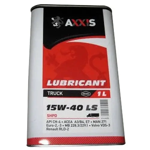 AXXIS TRUCK 15W-40 LS UHPD - дизельне моторне масло класу SHPD (Super High Performance Diesel), призначене для найважчих вимог до характеристик високопотужних двигунів з турбонаддувом. ЄВРО-2-ЄВРО-3 без фільтру сажі зі збільшеним інтервалом заміни. Перевищує допуски ACEA A3/B4, E7 MB 228.3/229.1; MAN 271; Volvo VDS-3; Renault RLD-2; ЄВРО-2-ЄВРО-3 API CH-4 Вироблено під контролем D.B. DEVELOPMENT SERVICES LIMITED, UK.