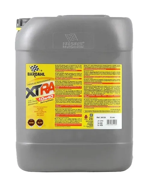 Моторна олива BARDAHL XTRA 10W40 20 л 34138. Моторна олива BARDAHL XTRA 10W40 205 л 34138Напівсинтетична моторна олива, розроблена для бензинових та дизельних двигунів легкових автомобілів та легкої комерційної техніки. Не призначена для використання у дизельних двигунах автомобілів, обладнаних сажовими фільтрами (DPF). Можливе збільшення міжсервісного інтервалу відповідно до рекомендацій автовиробників. Має широкий діапазон робочих температур, що забезпечує захист деталей двигуна від високотемпературних відкладень.Специфікація ACEA A3/B4 API SN/CF MB 229.1 VW 502.00 - 505.00