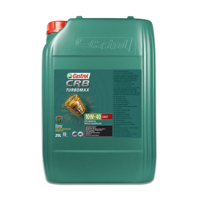 Нова Castrol CRB Turbomax 10W-40 E4/E7 - олія підходить для більшості дизельних двигунів, що відповідають нормам викидів від Євро-1 до Євро-5. Також продукт підходить для використання в двигунах без сажових фільтрів, для деяких двигунів із системами рециркуляції вихлопних газів (EGR) та для деяких двигунів із системами селективної каталітичної нейтралізації оксидів азоту (SCR NOx) СПЕЦИФІКАЦІЇ / ДОПУСКИ ACEA E4, E7 API CI-4 JASO DH-1 Cummins CES 20077, 20078 DDC Powerguard 93K215 Deutz DQC III-10 Mack EO-N MAN M 3277 MB-Approval 228.5 MTU Oil Category 3 RVI RLD-2 Volvo VDS 3