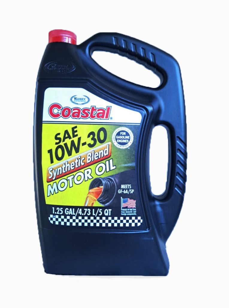 Coastal Synthetic blend 10W-30 — це високоякісна автомобільна моторна олива з високим миючим засобом, спеціально розроблена для задоволення найсуворіших вимог до змащення сучасних двигунів. Базові оливи групи II і групи III з високим індексом в'язкості в поєднанні з ретельно підібраним пакетом присадок забезпечують максимальний захист від зносу, іржі, корозії, окислювального згущення, утворення кислоти, шламу та лакових відкладень. Переваги:Вдосконалений захист від зносу, шлаку та осаду.Чудовий захист від термічної руйнації.Виняткова ефективність ресурсозбереження.Відмінний захист від відкладень при будь-яких робочих температурах.Відмінний захист від зносу, спінювання, іржі та корозії.Чудові можливості холодного запуску. Допуски:Coastal Synthetic blend SAE 10W-30 API SP/GF-6 відповідає або перевищує вимоги:GM 6094M;Chrysler MS-6395;Відповідає специфікаціям Toyota і специфікаціям Honda Service Fill.