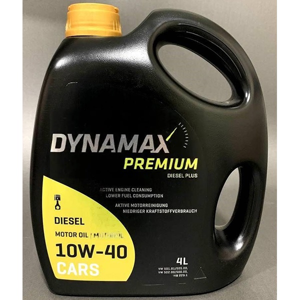 Моторна олива DYNAMAX DIESEL PLUS 10W40 4л. Моторна олива DYNAMAX DIESEL PLUS 10W40 4лНапівсинтетична моторна олива, що відрізняється високою ефективністю, універсальністю та приємною ціною. Застосовується для дизельних або бензинових силових агрегатів, що вимагають від масла відповідності стандартам ACEA A3/B4 або API SM/CF і нижче. Також масло відповідає допускам провідних автовиробників, серед яких Volkswagen і Mercedes-Benz.Специфікація: API SN/SM/CF, ACEA A3/B4 MB-Approval 229.1/MB 229.3, RN 0700/710, VW 501.01/5