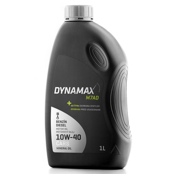 Моторна олива DYNAMAX M7AD 10W40 1л. Моторна олива DYNAMAX M7AD 10W40 1лВсесезонная моторна олива в першу чергу призначена для змащування чотиритактних бензинових двигунів старих конструкцій. Забезпечує дуже хороший запуск двигунів навіть при дуже низьких температурах взимку, а також має значний запас вязкості на літній період.вязкість: SAE 10W-40специфікації: API SD/CBкінематична в’язкість при 100 °C: 13,7 mm2/sіндекс в’язкості: 150