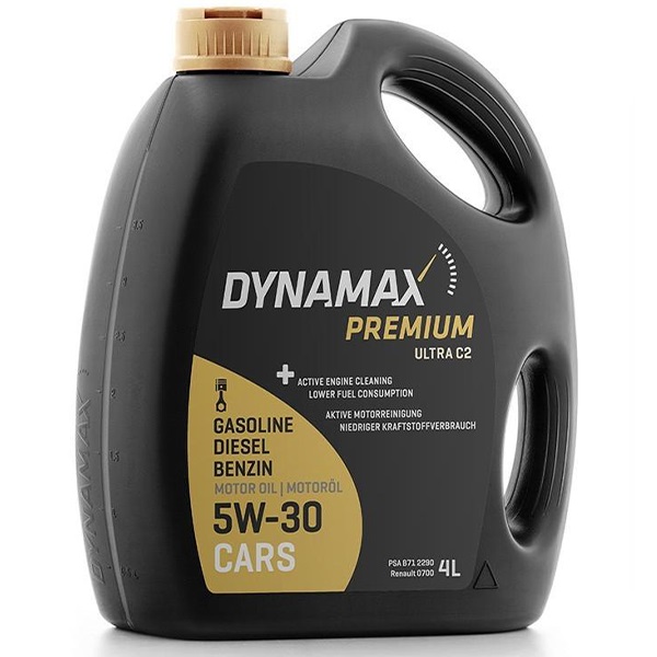 Моторна олива DYNAMAX PREMIUM ULTRA C2 5W30 4л. Моторна олива DYNAMAX PREMIUM ULTRA C2 5W30Високопродуктивна моторна олива на основі 100% синтетичної технології, призначена для використання в бензинових та дизельних двигунах, які вимагають стандарту PSA B71 2290. Також підходить для двигунів, які потребують специфікації ACEA A5/B5 ACEA C2. вязкість: SAE 5W-30 специфікації: API SN/CF; ACEA A1/B1/A5/B5/C2, PSA B71 2290; Renault 0700 кінематична вязкість при 100 °C: 11,8 mm2/s індекс вязкості: 170