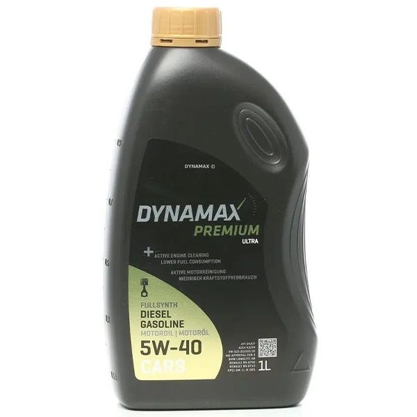 Моторна олива DYNAMAX ULTRA 5W40 1л. Моторна олива DYNAMAX ULTRA 5W40Універсальна моторна олива, вироблена за синтетичною технологією, призначена для змащування бензинових та дизельних двигунів з безпосереднім впорскуванням, з наддувом або без нього. вязкість: SAE 5W-40 специфікації: API SM/CF; ACEA A3/B4, VW 502.00/505.00; MB229.3 кінематична вязкість при 100 °C: 14 mm2/s індекс вязкості: 167