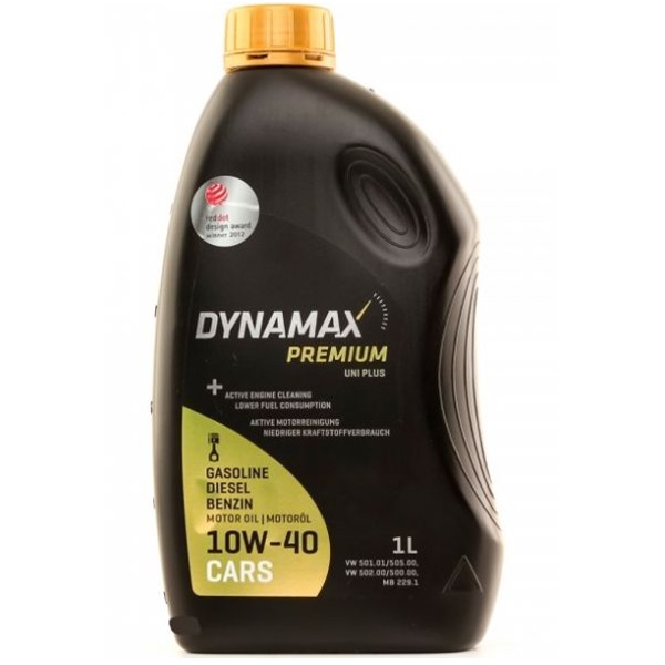 Моторна олива DYNAMAX UNI PLUS 10W40 1л. Моторна олива DYNAMAX UNI PLUS 10W40 1лНапівсинтетична моторна олива підходить для бензинових та дизельних двигунів. Її синтетична складова покращує змащування двигуна в умовах навантаження, зберігаючи при цьому чудові властивості оливи. Підходить для всесезонного використання. Має задовільні властивості при низьких температурах в зимову пору року, а також при високих температурах вліткувязкість: SAE 10W-40специфікації: API CF/SM; ACEA A3/B4, MB 229.1; VW 501.01/505.00/502.00/500.00Кінематична вязкість при 100 °C: 13,7 мм2/сіндекс вязкості: 156