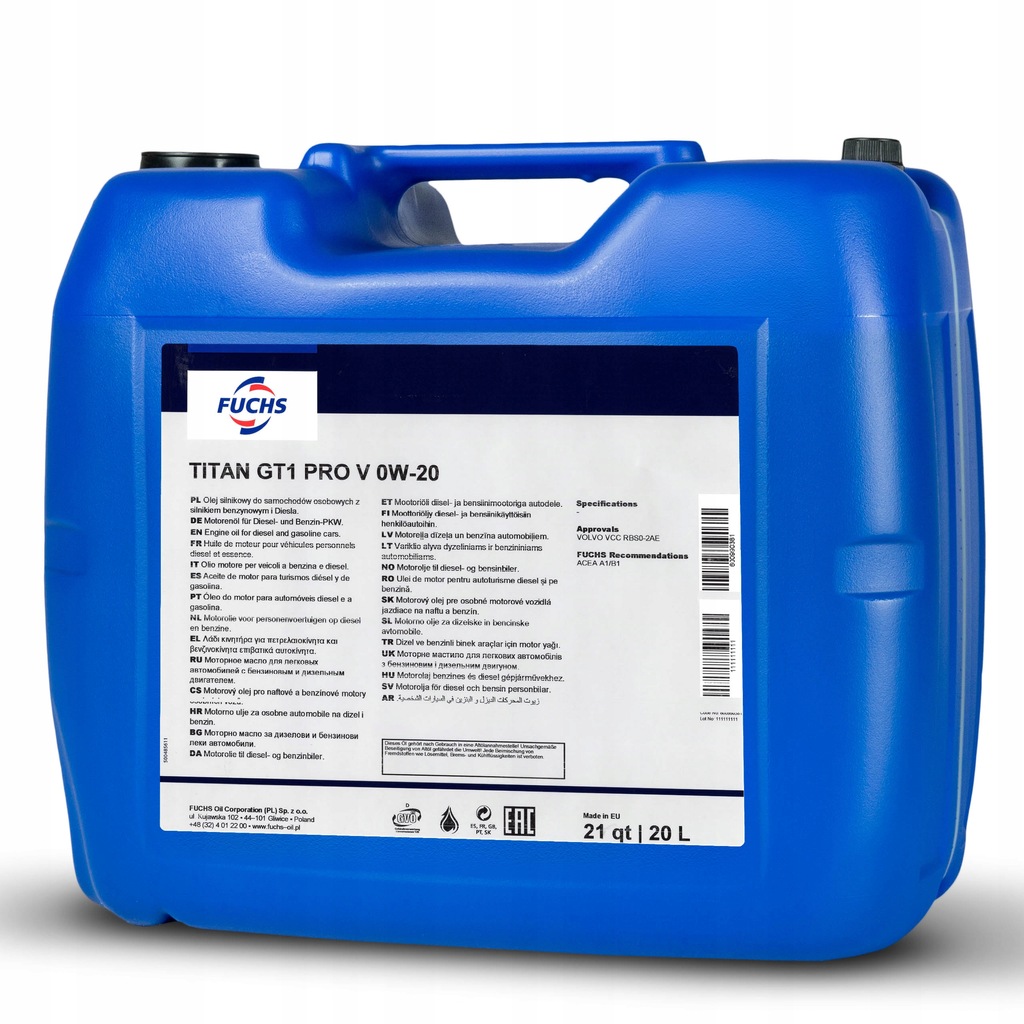 Олива моторна FUCHS TITAN GT1 PRO V 0W-20 20л. 600990381