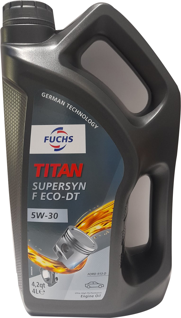 TITAN SUPERSYN F Eco-DT 5W-30 - це всесезонна енергозберігаюча моторна олива для дизельних двигунів легкових автомобілів і легкого комерційного транспорту Ford, серії DuraTorq. Продукт виробляється за новітньою технологією, що дає найбільші переваги для сучасних двигунів. Переваги- економічність, довговічність і знижений рівень шкідливих викидів, висока довгострокова надійність, захист від зносу і видатні низькотемпературні характеристики. Застосування Розроблений спеціально для використання в дизельних двигунах автомобілів Форд, а також рекомендується для використання в бензинових двигунах легкових автомобілів цієї марки. Крім того може застосовуватися і в автомобілях інших виробників в відповідності технічних умов ACEA і рекомендацій виробника. Може бути використаний в бензинових двигунах в тому числі оснащених турбонаддувом, а також системами прямого або непрямого уприскування. Продукт повністю сумісний з моторними оливами інших виробників. Однак, щоб в повній мірі використовувати переваги продукту, рекомендуємо уникати такого змішування. Переваги • Висока термічна і антиокислювальна стабільність • Захист від утворення відкладень • Економія палива • Дуже хороші пускові властивості • Чудовий захист від зносу • Рекомендується для легкових автомобілів виробництва Форд, оснащених дизельним двигуном.