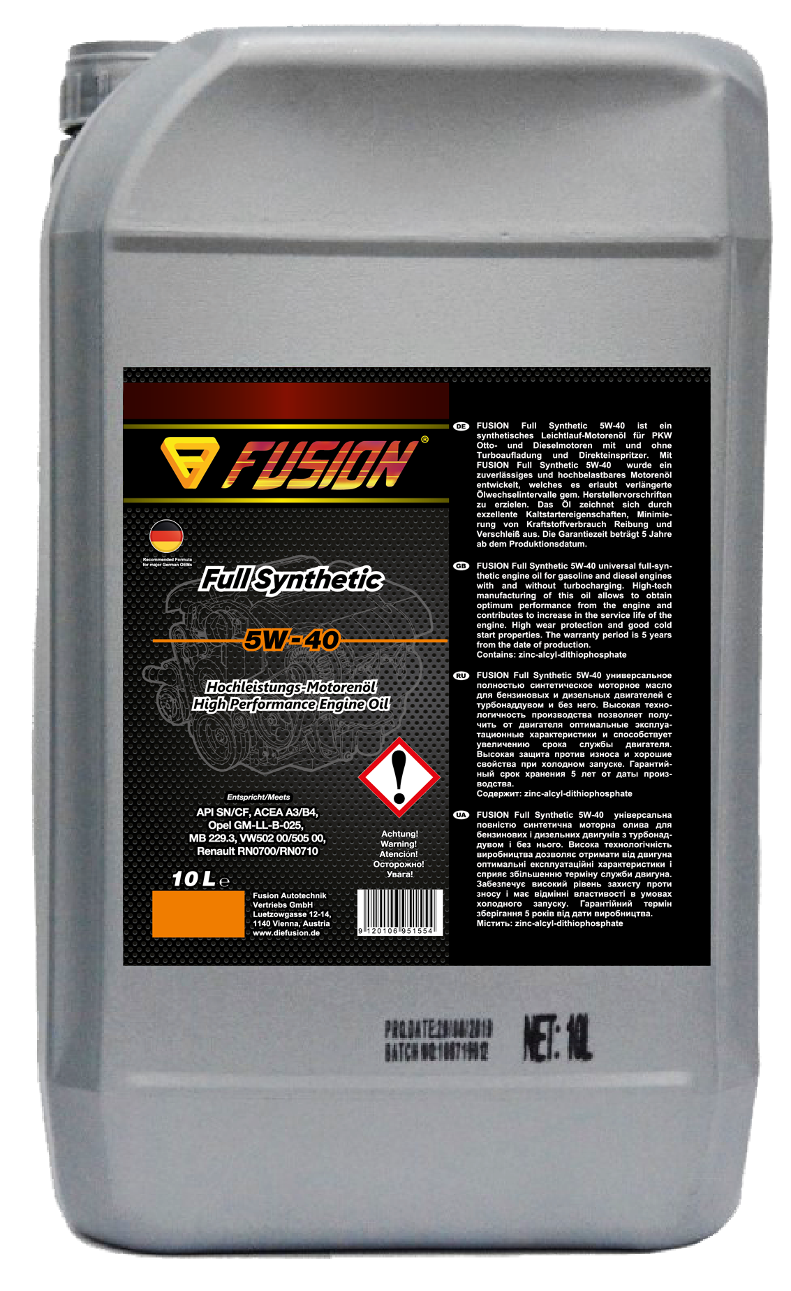 Олива моторна FUSION Full Syntetic 5W-40 10л. FU54010
