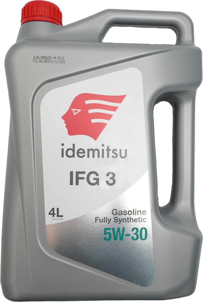 Олива моторна IDEMITSU IFG3 5W-30 SP 4л Спеціалізована синтетична моторна олива IDEMITSU IFG3 5W-30 SP серії IFG 3 містить високоочищену синтетичну базову основу, яка зберігає свою в’язкість протягом усього терміну служби, тоді як миючі присадки зберігають ваш двигун чистішим, захищаючи його від зносу, навіть у найекстремальніших умовах міської їзди з зупинками. IDEMITSU IFG3 5W-30 SP забезпечує високий захист двигуна та економію пального. Перевершує міжнародний стандарт і стандарт OEM. Призначена для всіх бензинових двигунів, які вимагають SAE 5W-30, включаючи бензинові двигуни з турбонаддуванням і прямим впорскуванням. Специфікації та допуски: Перевищує рівень продуктивності API SP.