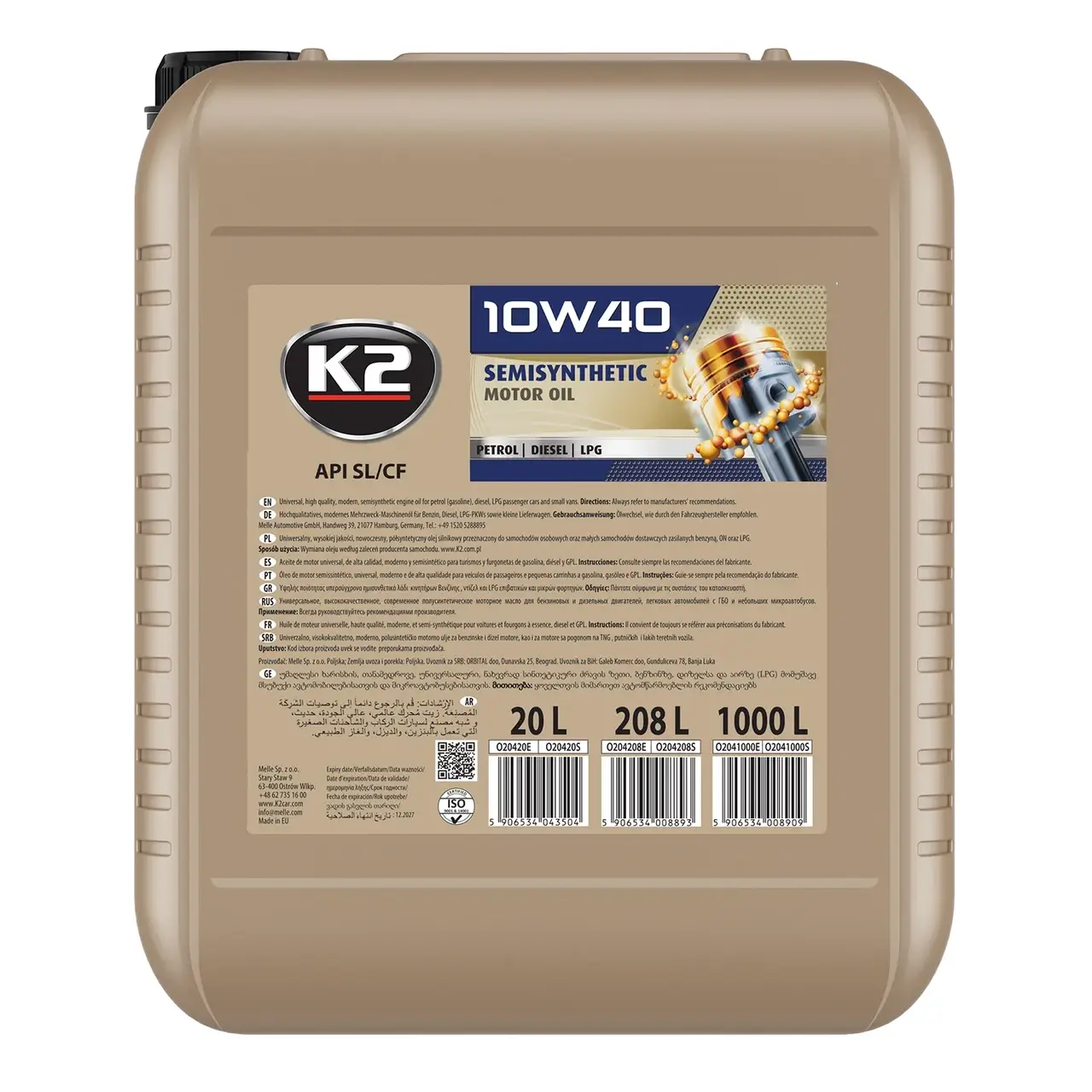 Олива моторна K2 Semisynthetic XL SL/CF 10W-40 20 л (O20420E)