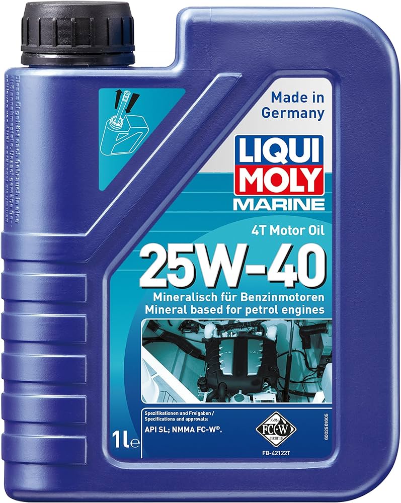 Мінеральна моторна олива для човнів Marine 4T Motor Oil 25W-40 Для експлуатації 4-х тактної човнової, морської та річкової техніки з повітряним та водяним охолодженням. Рекомендується для застосування за різних температур. Спеціально підібрані базові масла у поєднанні із сучасним пакетом присадок забезпечують оптимальне змащування та надійну роботу двигуна плавального засобу. універсальне застосування в бензинових і дизельних двигунах водної техніки відмінний антикорозійний захист стабільний тиск в системі змащування ефективне змащування деталей двигуна необхідну в'язкість протягом усього періоду експлуатації хороший захист двигуна від зносу забезпечити високу надійність роботи 4-х тактних двигунів човнів та катерів. Універсально у застосуванні. Змішується з різними стандартними олива ми. Допуски та специфікації: API SL; NMMA FC-W