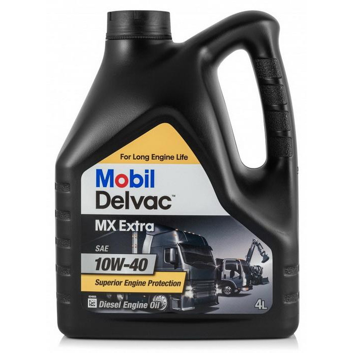 Олива Mobil Delvac MX Extra 10W-40 - синтетична Олива для високонавантажених двигунів, що забезпечує відмінне змащування сучасних бензинових та дизельних двигунів, що працюють у суворих умовах, що має підвищені властивості підтримки чистоти двигуна, що продовжує терміни служби моторів. Цей продукт перевищує чи відповідає специфікаціям більшості основних європейських та американських виробників дизельних двигунів. Олива Mobil Delvac MX Extra 10W-40 створена на основі високоякісних базових масел з додаванням сучасного пакету присадок, що забезпечує відмінні в'язкісно-температурні властивості, захищає від утворення сажі, а також забезпечує відмінну стійкість оливи до окислення та захищає двигун від корозії, продовжуючи таким чином термін служби двигунів. Відмінні характеристики даного всесезонного масла забезпечують чудові пускові властивості масла і прокачування масла при негативних температурах. Застосування високопотужних дизельних двигунів з підвищеними екологічними параметрами суттєво підвищило вимоги до мастильних матеріалів. Зменшені габарити двигунів призвели до зниження обсягу масла, що використовується в них, а також до зменшення обсягу доливок. Верхні кільця поршнів розташовуються вище на поршнях, що змушує олію працювати ближче до камери згоряння, де високі температури збільшують температурні навантаження на олію. Збільшений тиск паливних форсунок і укорочений час дії фаз запалення привели до поліпшення контролю вихлопу, але збільшили робочі температури та навантаження на олію з точки зору контролю утворення сажі. Олива Mobil Delvac MX Extra 10W-40, створена на основі чудових базових масел та сучасного збалансованого пакету присадок, забезпечує оптимальну роботу сучасних дизельних та бензинових двигунів, а також більш ранніх моделей. Застосування: Машини та обладнання з безнаддувними та турбонаддувними дизелями провідних європейських, японських та американських виробників Дорожні перевезення, від легких до важких вантажівок Позашляхові машини, що використовуються у будівництві, гірничовидобутку та сільському господарстві Змішані парки Допуски та специфікації: ACEA3; ;B3;A2; API CI-4; CH-4; CG-4; CF-4; CF; SL; SJ; MB 228.3; MB 229.1; Mack EO-M Plus; Volvo VDS-3; VDS-2; MAN M3275; Renault RLD; Cummins CES 20078/7/6/2/1; MTU Typ 1