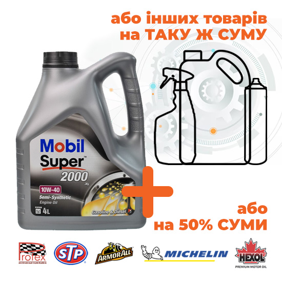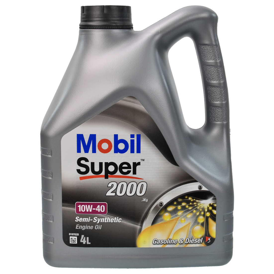 Mobil Super™ 2000 X1 10W-40 напівсинтетична моторна олива передового рівня властивостей для легкових автомобілів Mobil Super 2000 X1 10W-40 — це напівсинтетична моторна олива, що забезпечує більш тривалий термін експлуатації двигуна та захист від відкладень шламу та зносу. Продукти сімейства Mobil Super™ 2000 вже добре зарекомендували себе на ринку як надійні моторні оливи, використання яких покращує експлуатаційні характеристики автомобілів. Mobil Super 2000 X1 10W-40 забезпечує: Покращений захист від відкладень та шламу Хорошу чистоту двигуна Захист при підвищених температурах Надійний захист від зносу Хороші змащувальні властивості при холодному пуску . ExxonMobil рекомендує застосовувати Mobil Super 2000 X1 10W-40, коли час від часу можуть скластися утруднені умови водіння, в: Двигунах більш ранніх розробок і конструкцій Бензинових та дизельних двигунах без дизельних сажових фільтрів (DPF) При керуванні в заміських та міських умовах Двигунах з підвищеними робочими характеристиками При звичайних умовах експлуатації та під час руху з навантаженнями Специфікації: ACEA А3;B3; API SL/CF; (Energy Concerving); MB 229.1; VW 501.01; VW505.00
