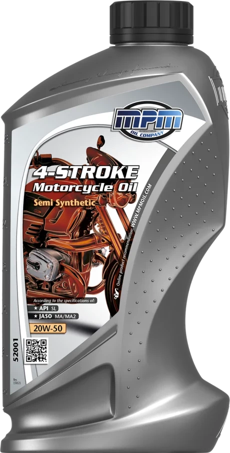 Напівсинтетичне масло для 4-тактних мотоциклетних двигунів з в'язкістю SAE 20W-50, спеціально розроблене для мотоциклетних 4-тактних двигунів з повітряним і водяним охолодженням. Підходить для цілорічного застосування. Також підходить для змазування коробок передач з «мокрими» муфтами зчеплення.
