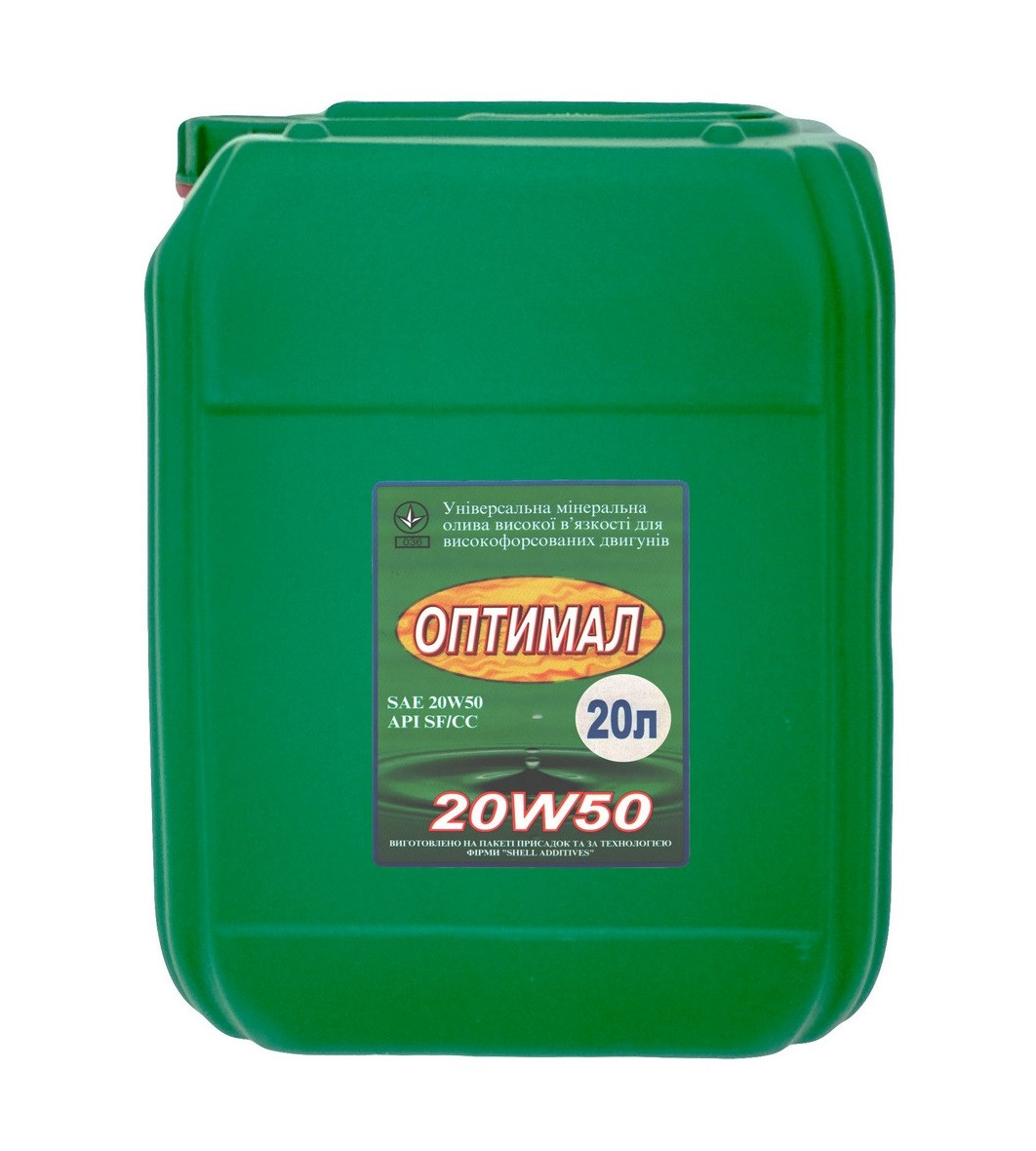 Мінеральна моторна олива високої в'язкості Оптимал 20W50 має високі експлуатаційні властивості.